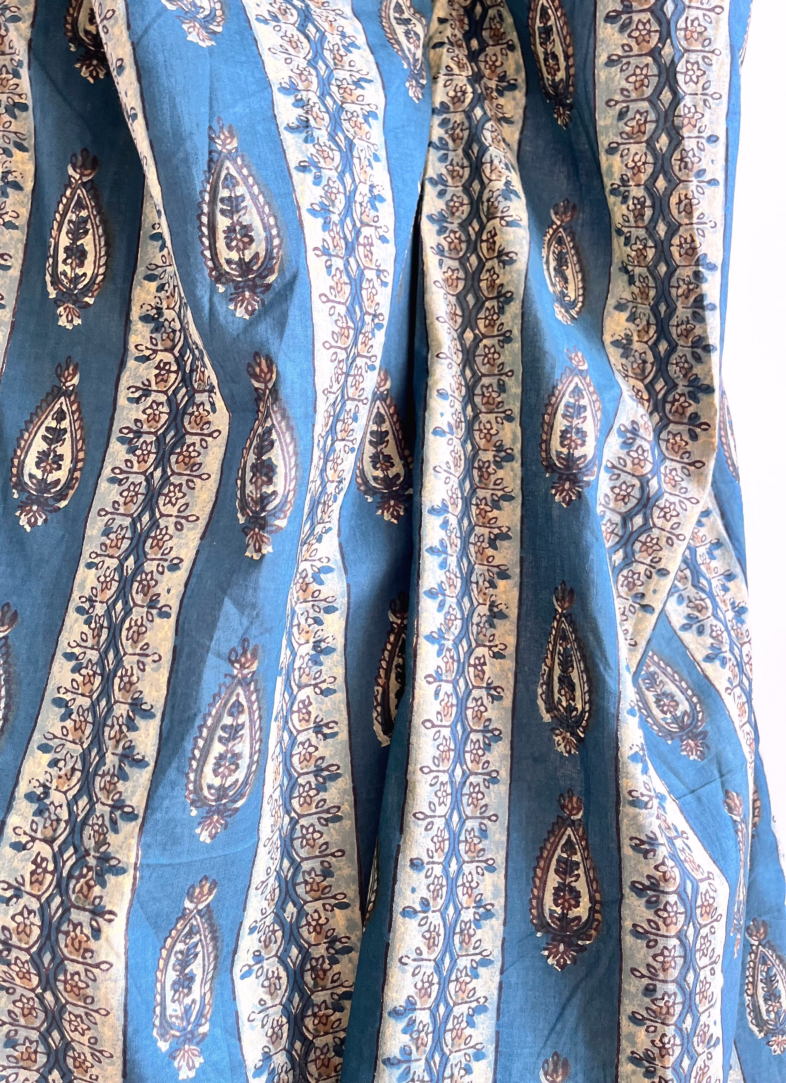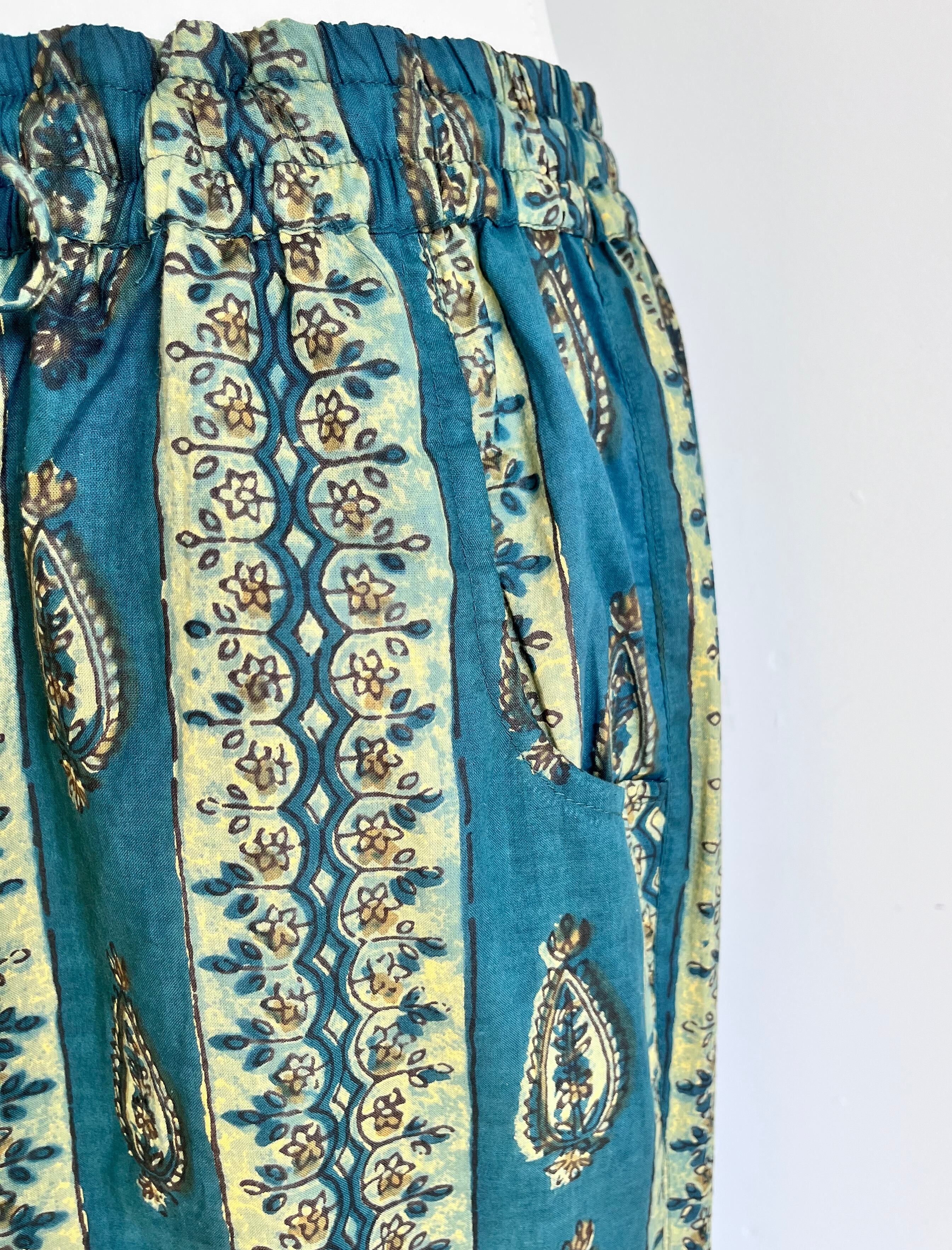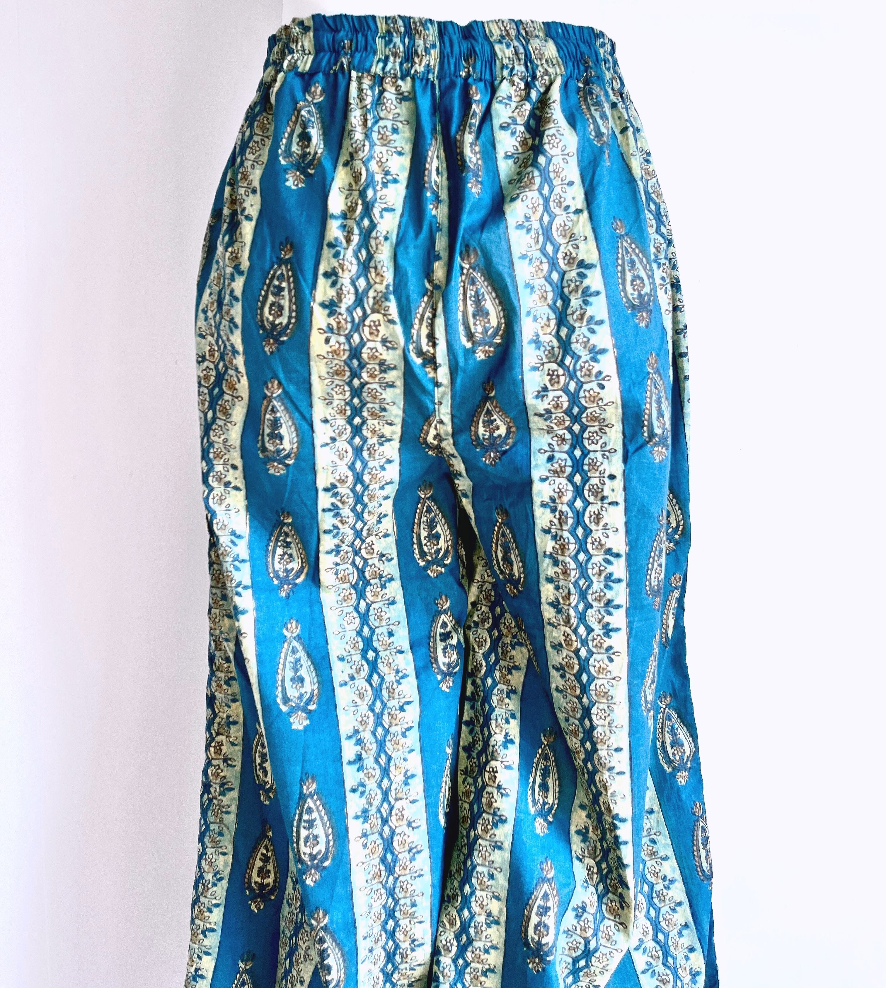 【Indu】ハンドブロックプリント Sanjh Aishaパラッツォ ワイドパンツ Floral Stripes M〜XL