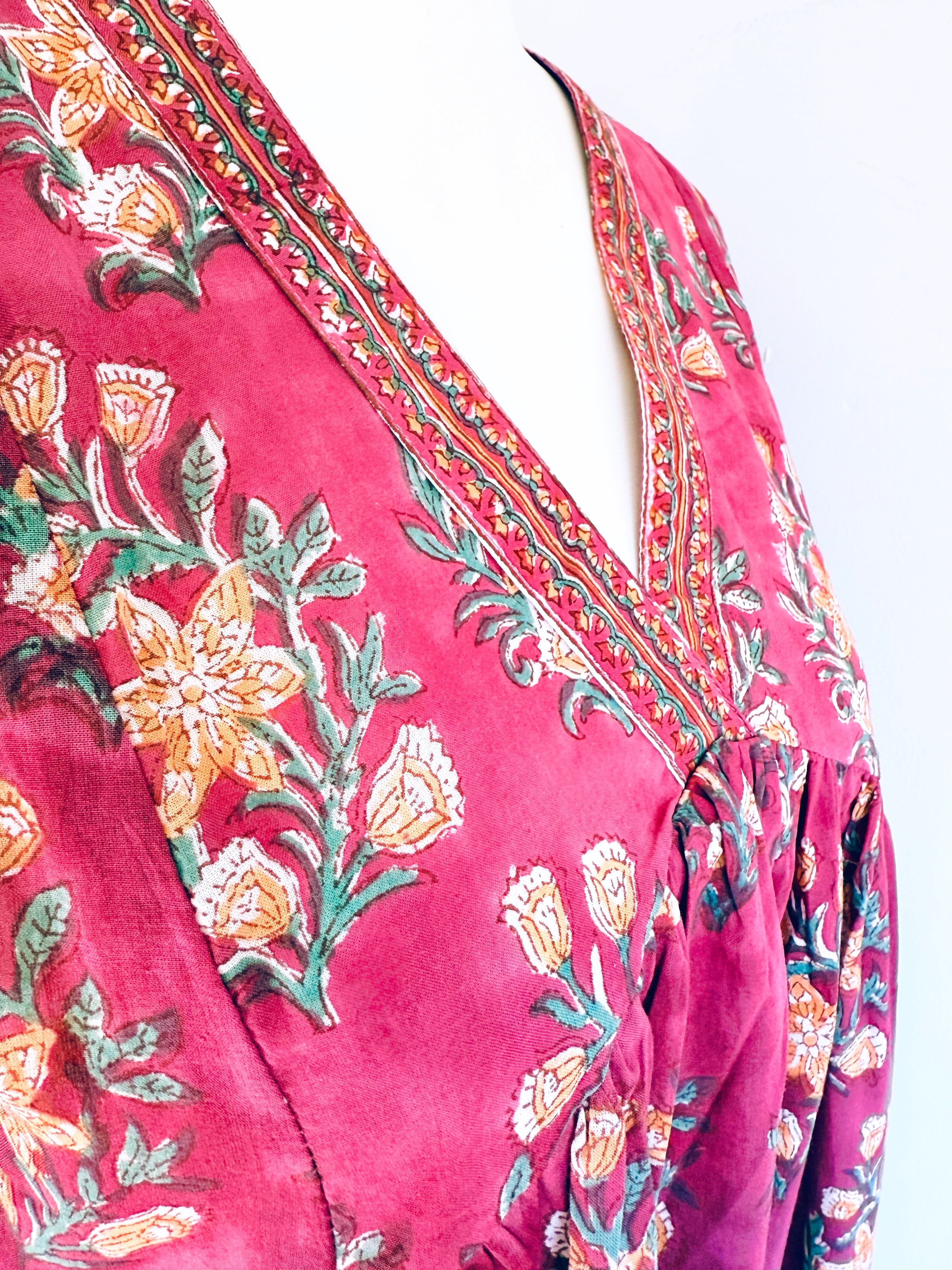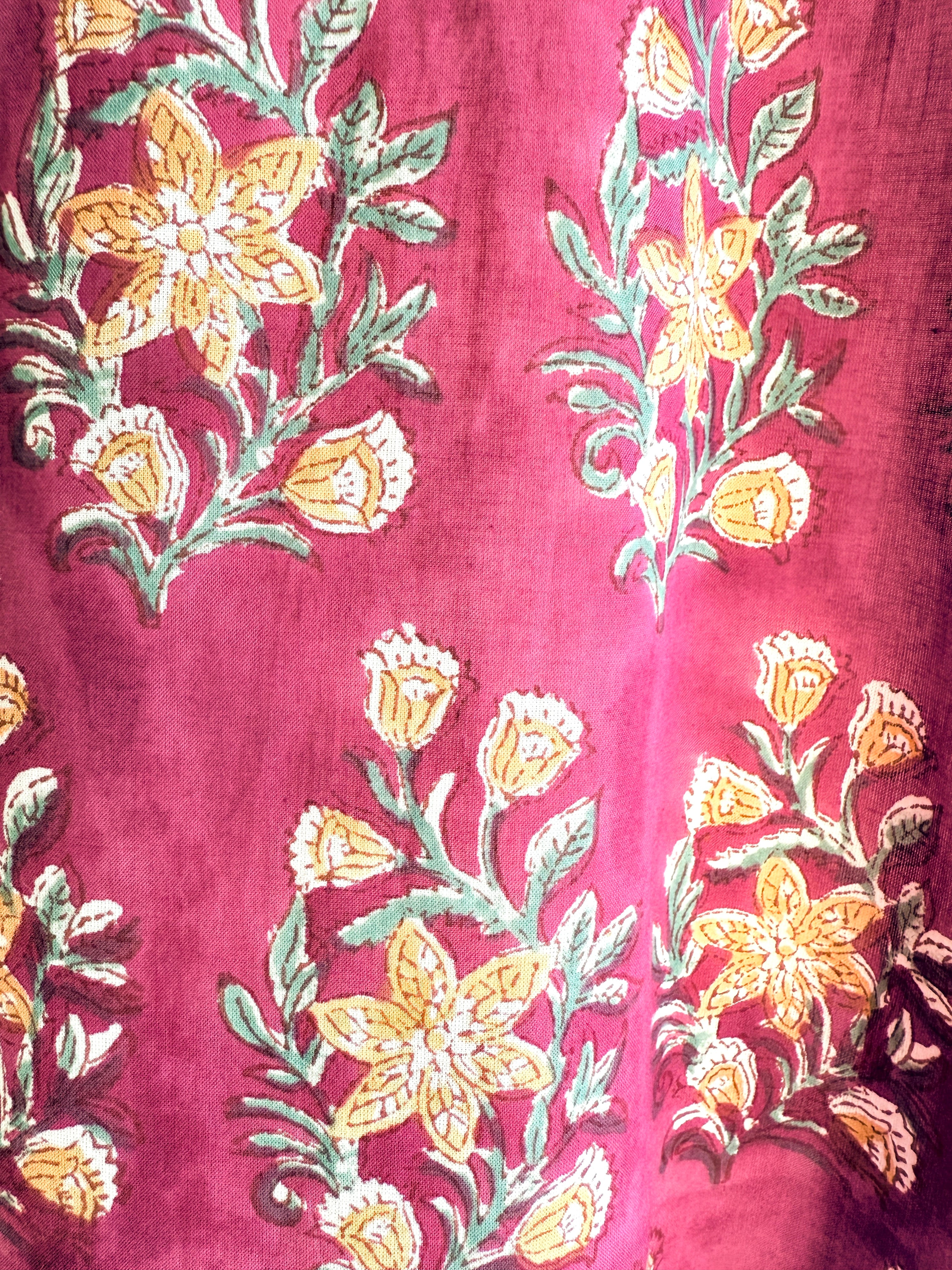 一面のローズガーデンのような鮮やかなハンドブロックプリント。