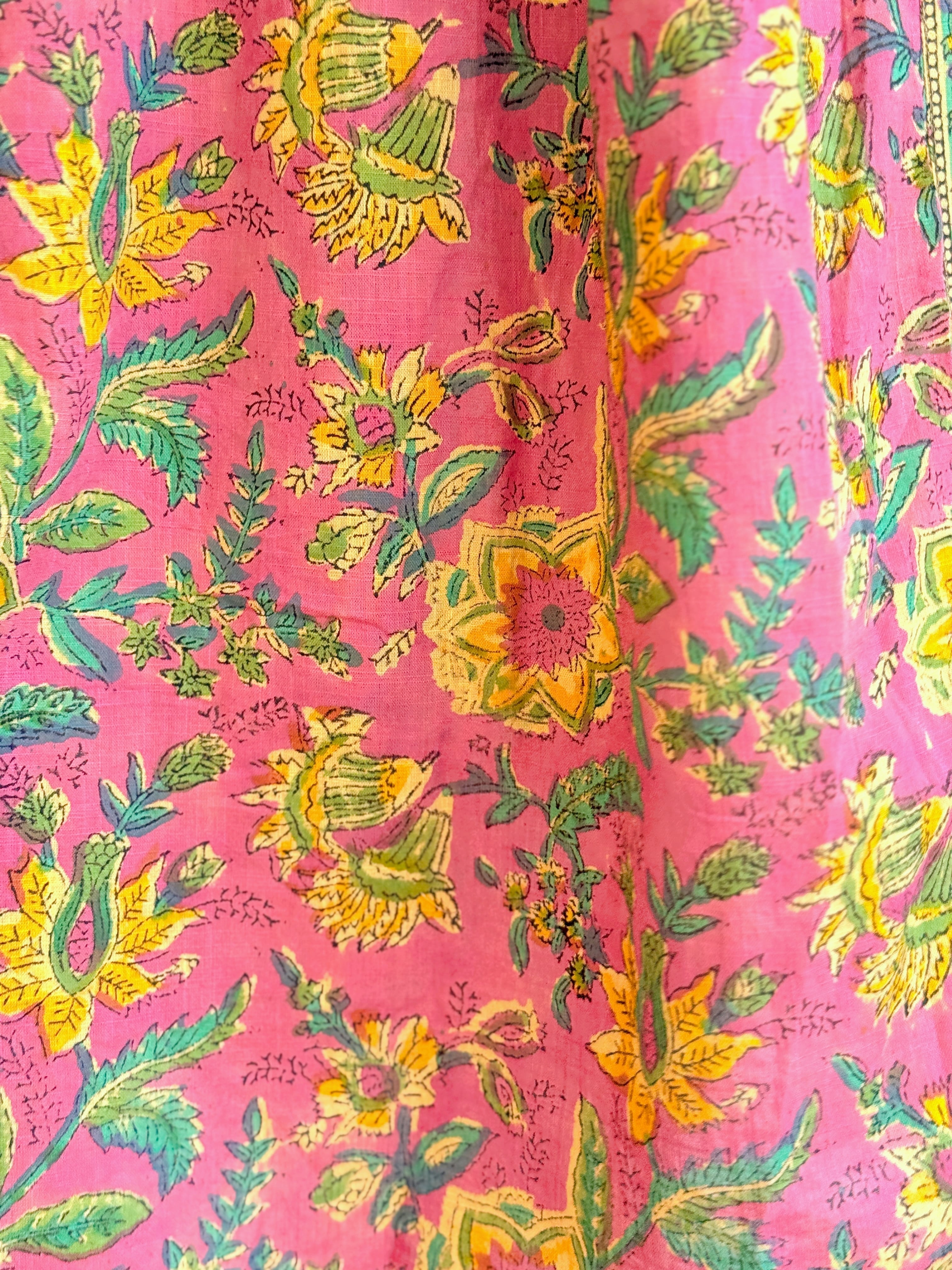 フローラルモチーフ、幾何学模様、ブッティの連続模様と賑やかな組み合わせ。