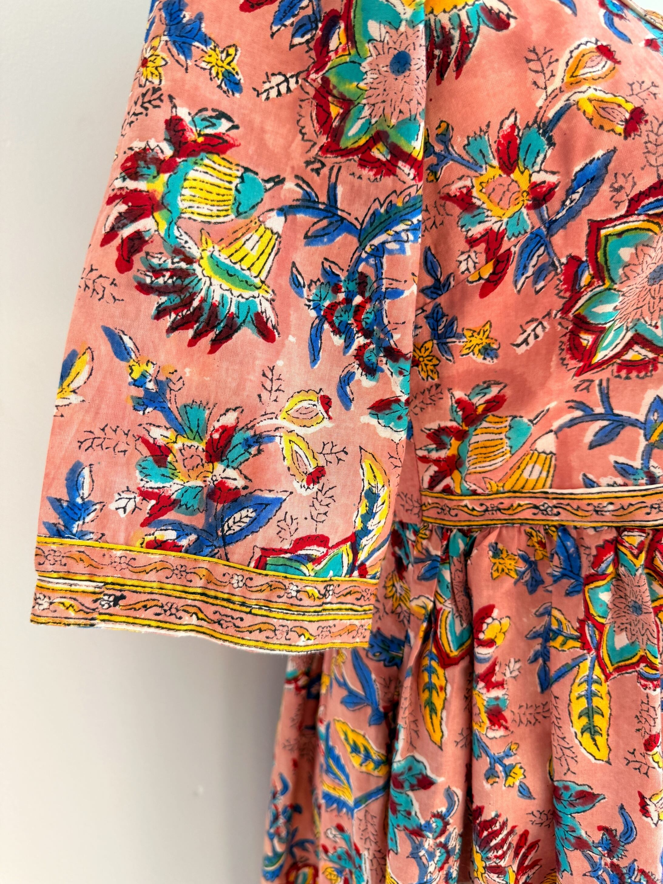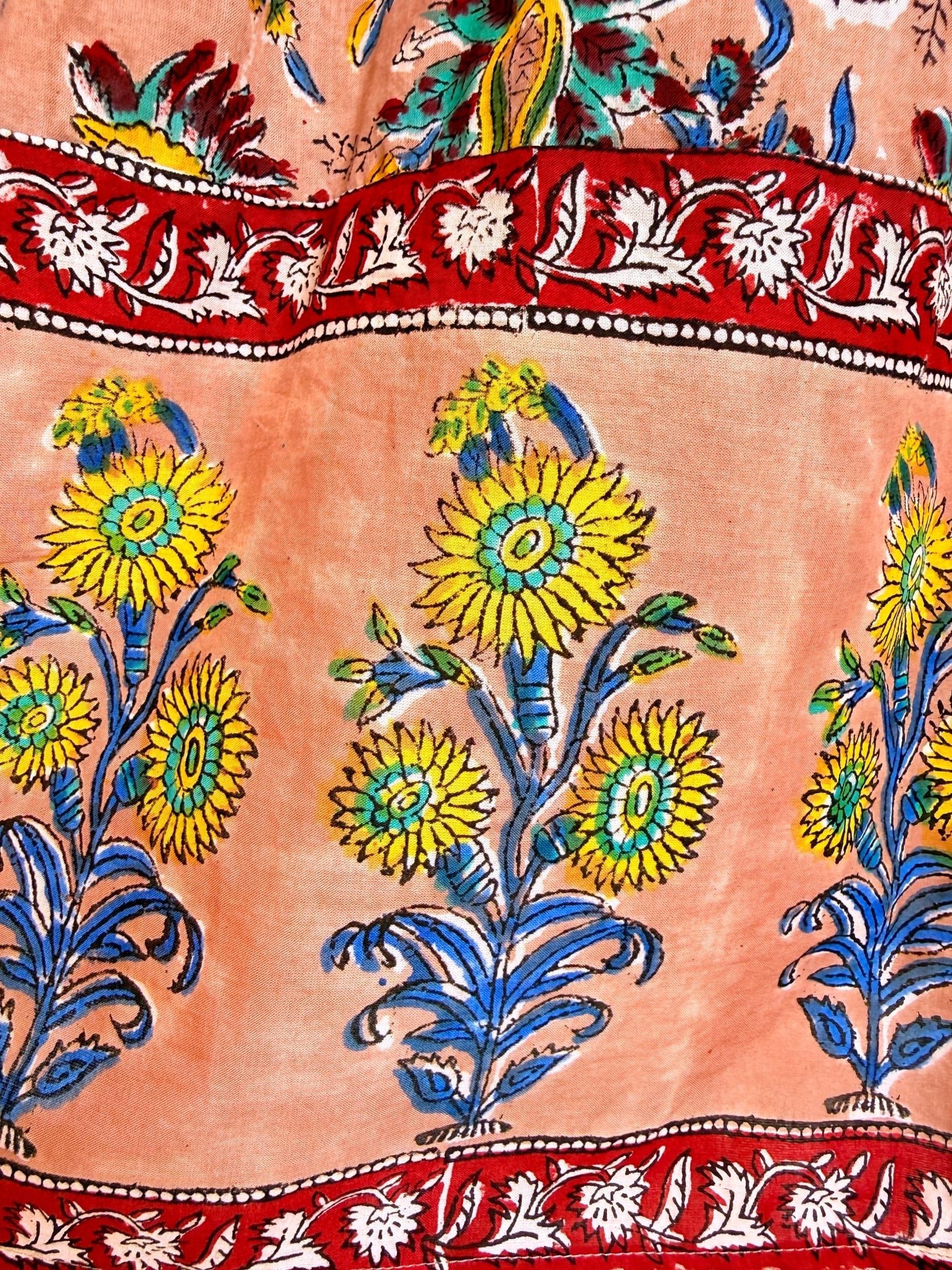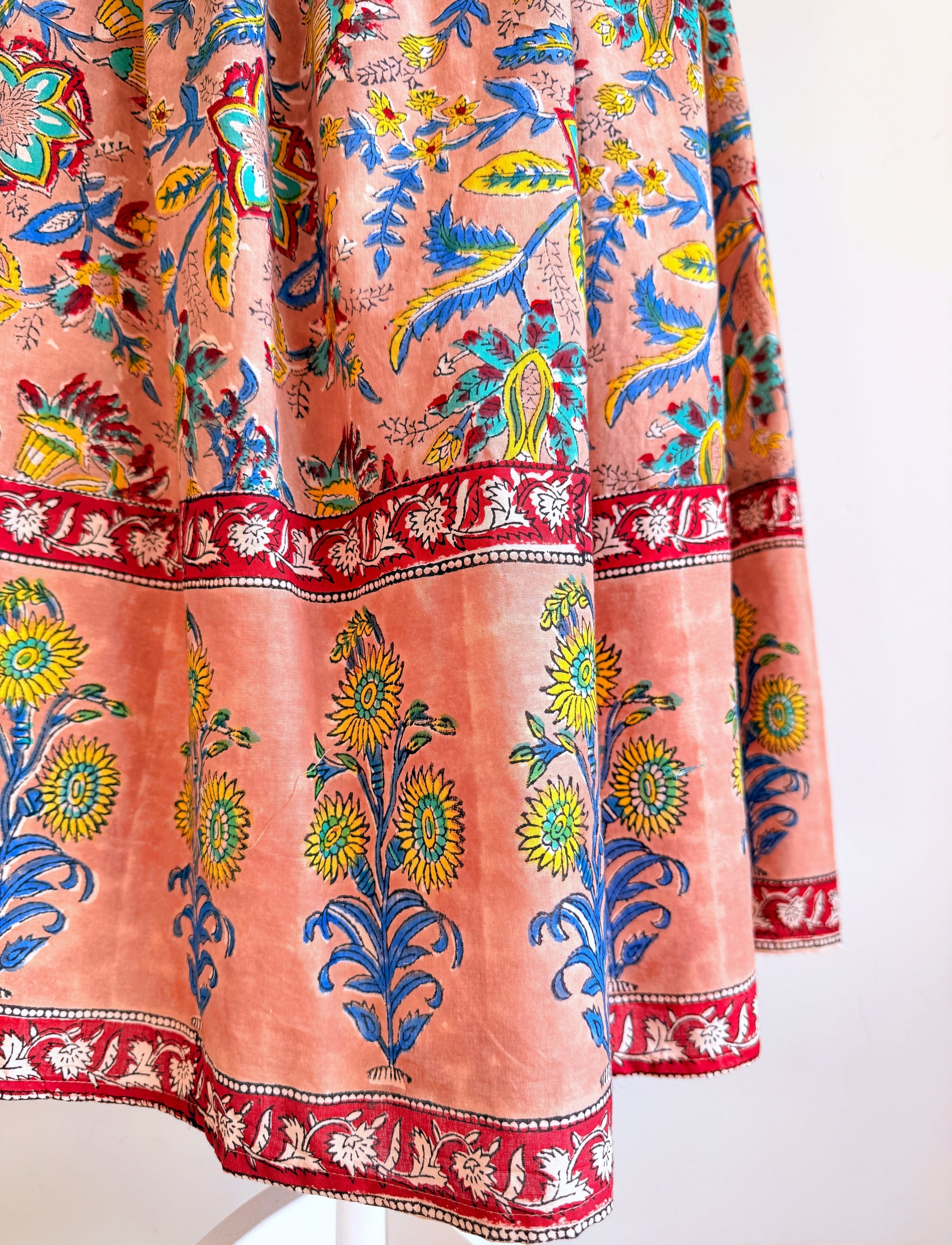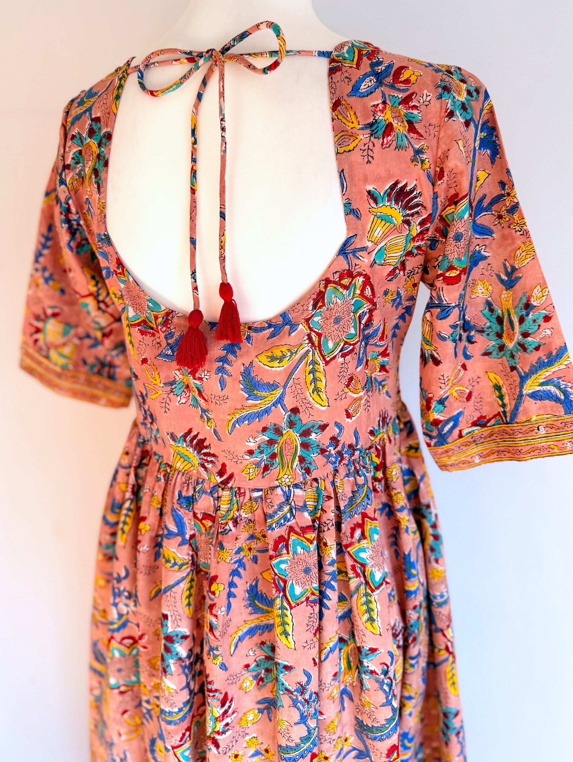 ナチュラルで優しい洗柿色のサンガネリのアナルカリワンピースです。
