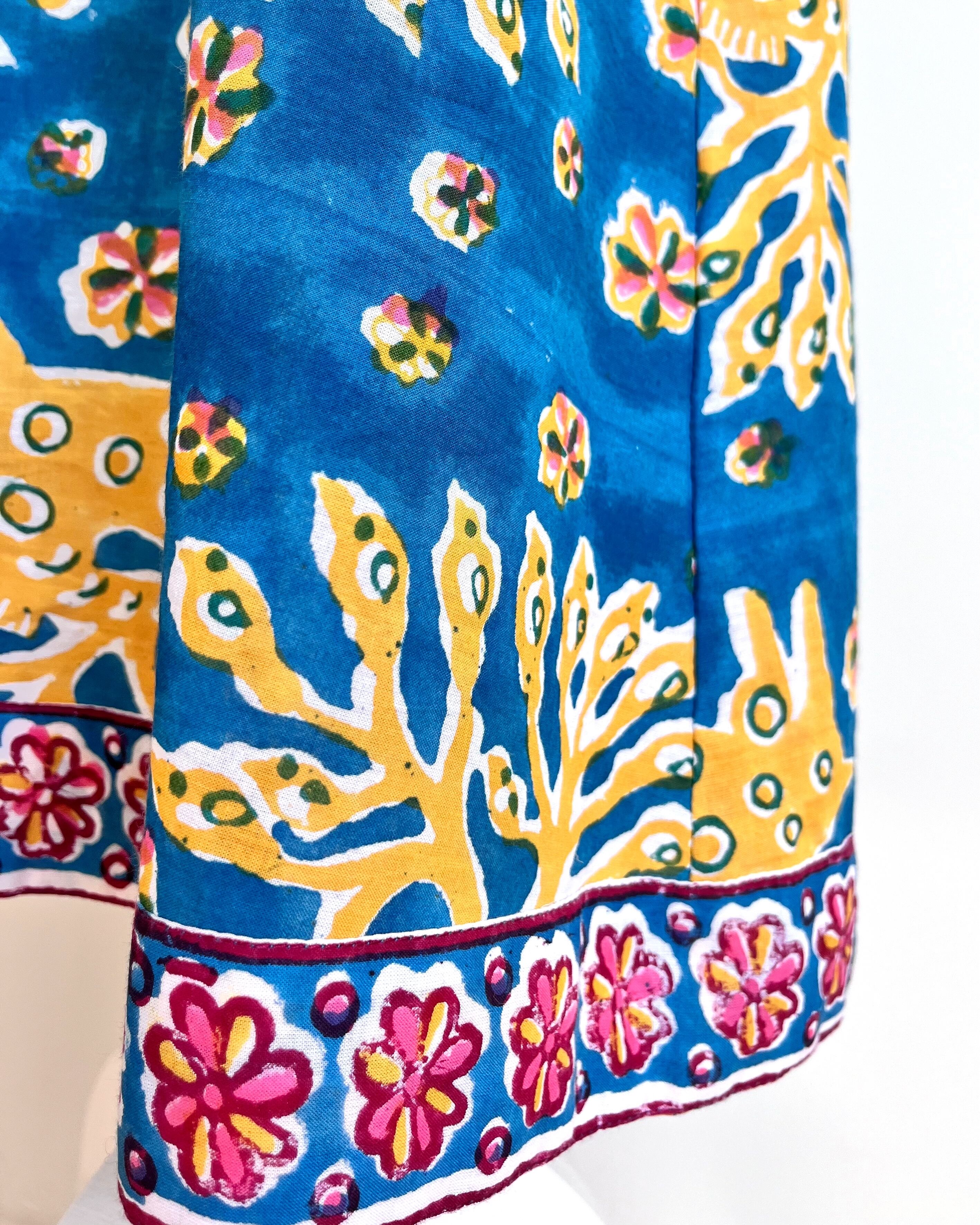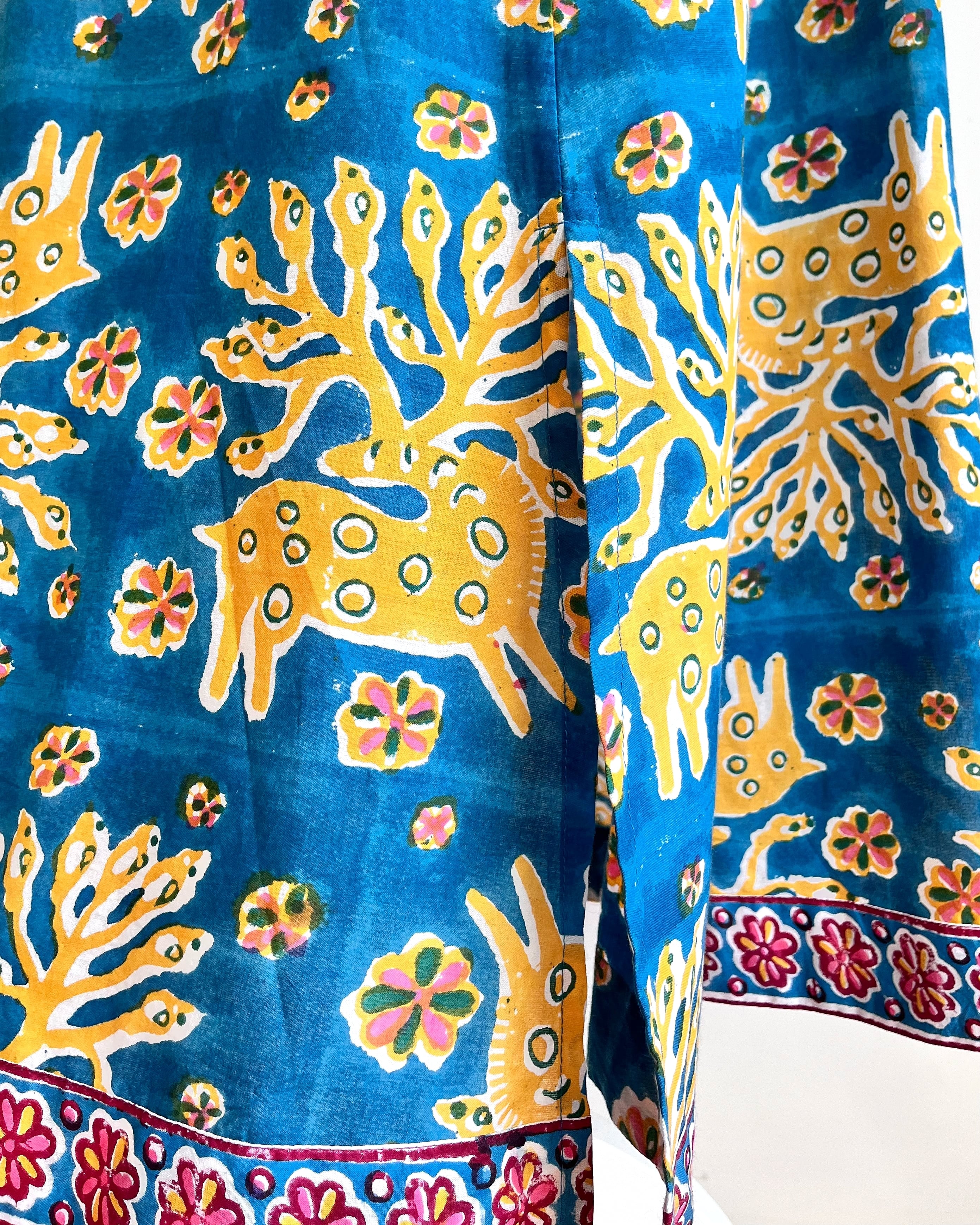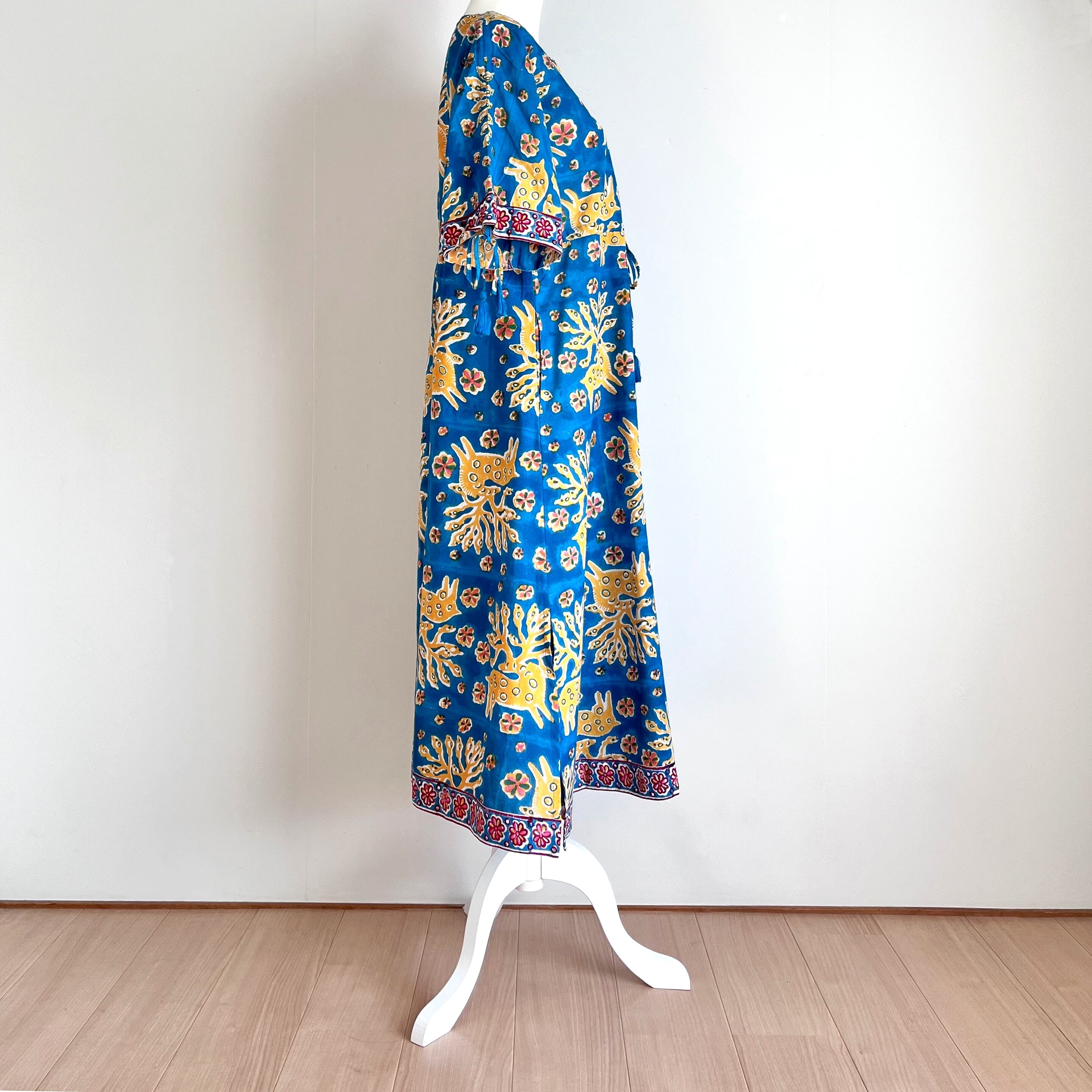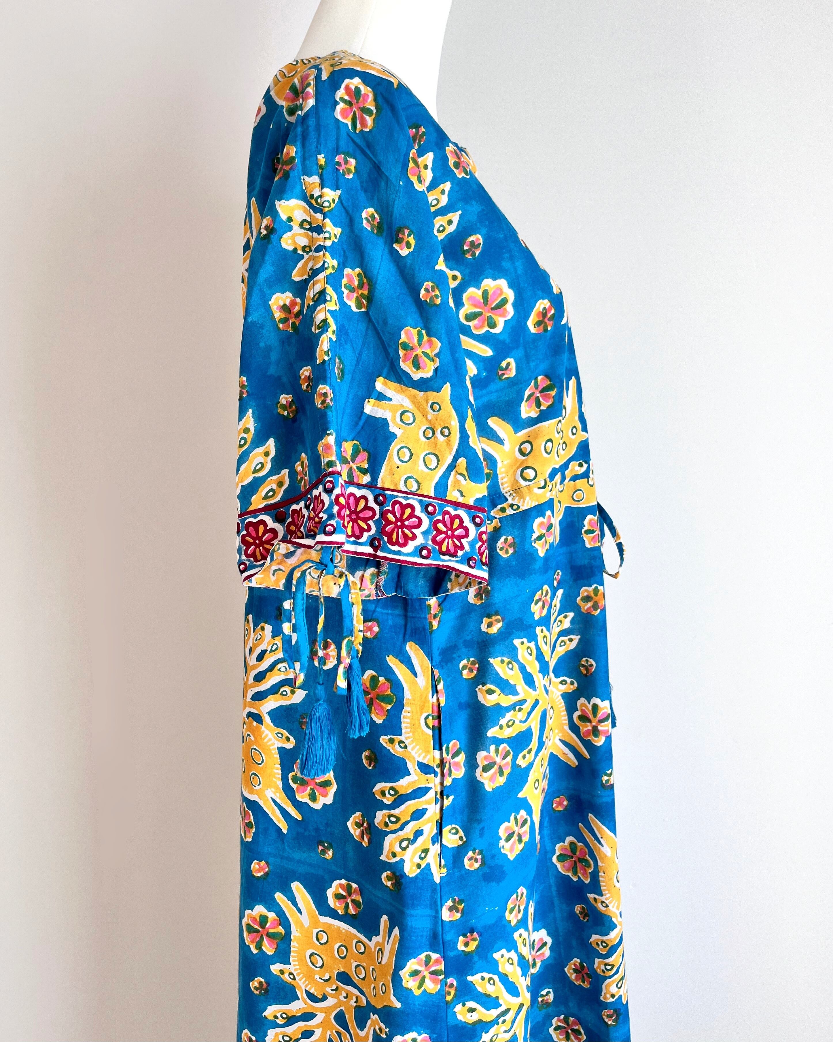 Sanganeri ハンドブロックプリント ドルマンスリーブ カフタン ワンピース Forest Spirit M〜XL