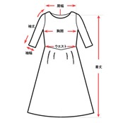 バスト 約 94 cm、ウエスト 約 64 - 80 cm (ゴム仕様で伸長可)、ヒップ 約 134 cm、袖ぐり 約 52 cm、袖丈 約 63 cm、袖口 約 22 - 30 cm (ゴム仕様で伸長可)、身丈 約 110 cm、フロントスリット 約 41 cm